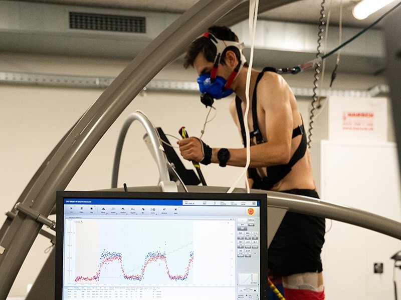 Performance is assessed across three test types measuring oxygen consumption under rising intensity levels. Each session concludes with a blood analysis evaluating, among other factors, red blood cell production in high‑altitude conditions - an essential physiological parameter in ski mountaineering.